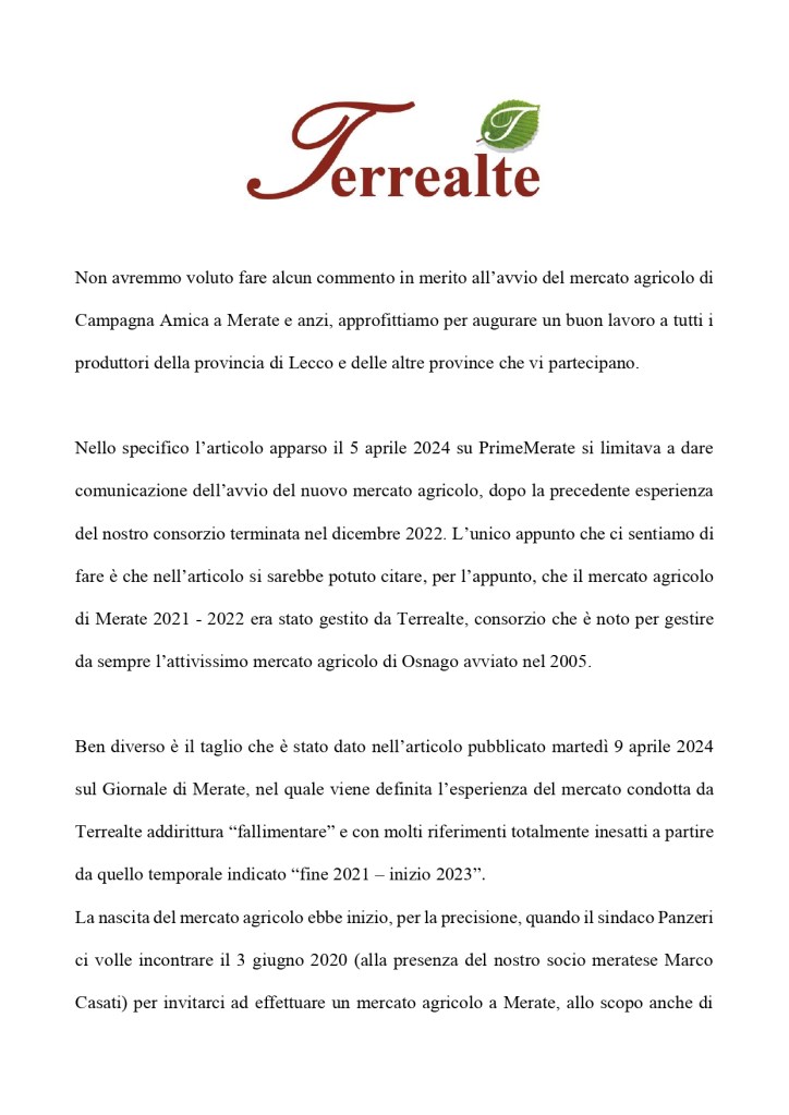 Articolo precedente Ritornano “I Giovedì di Terrealte”: il 18 aprile primo appuntamento c/o l’agriturismo “I Gelsi”! Mercoledì 10 aprile, dalle 14.30 alle 18.30, e sabato 13 aprile, dalle 7.30 alle 12.30, il mercato agricolo di Osnago sarà regolarmente aperto! Sabato 13 aprile sarà presente anche il vignaiolo Maggioni Francesco di Montevecchia!