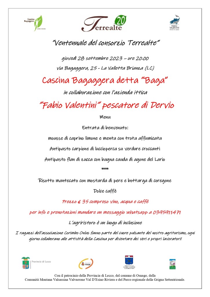 Giovedì 28 settembre, alle ore 20.00, gustosissima serata Eno Gastronomica alla Cascina Bagaggera: formaggi di capra e pesce di lago! Serata eno gastronomica alla Cascina Bagaggera con la partecipazione del pescatore Fabio Valentini di Dervio Giovedì 28 settembre – ore 20.00 Prenotatevi allo 039 531 1471 Condividi: Fai clic per condividere su X (Si apre in una nuova finestra) X Fai clic per condividere su Facebook (Si apre in una nuova finestra) Facebook Mi piace Caricamento...