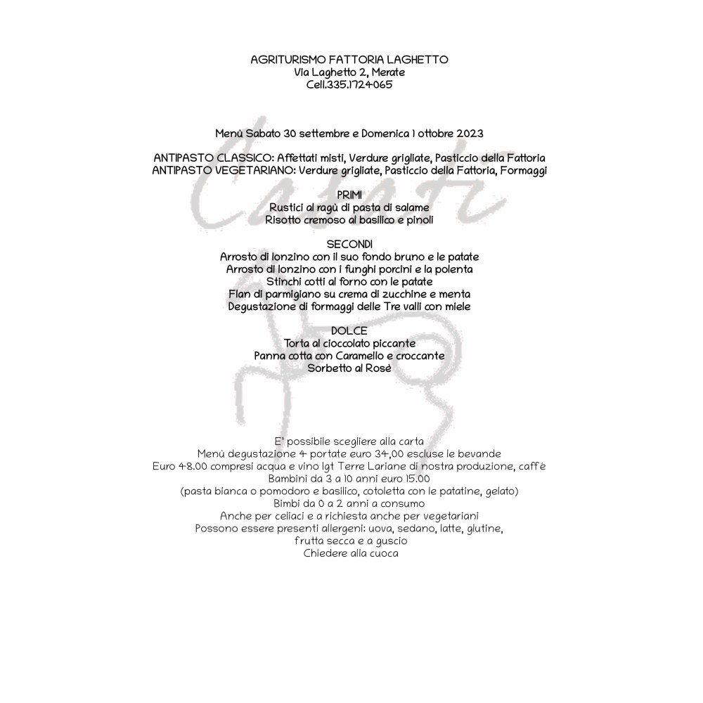 Il menu del fine settimana della Fattoria Laghetto